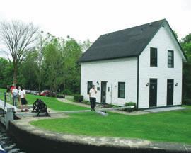 Le respect qu’ont su démontrer les autorités de Merrickville envers le patrimoine historique de leur village ainsi que celui du canal Rideau contribue non seulement à attirer des gens, mais cela aide également la communauté à se redéfinir. Vous serez sûr de voir les sites historiques, car le canal passe en plein centre de la municipalité. Ses trois écluses permettent une élévation totale de 25 pieds. Elles sont séparées par des bassins de virage uniques, conçus à l’origine pour le débarquement des troupes et l’approvisionnement. Chaque fois que les bateaux franchissent les écluses, le trafic s’arrête et le pont reliant les deux côtés de la municipalité tourne. C’est à cet endroit également qu’on trouve le plus grand blockhaus du canal, qui sert maintenant de musée administré par la « Merrickville and District Historical Society ». L’organisme « Les Amis du canal Rideau » occupe le bâtiment voisin, appelé « Le Depot », qui sert de centre d’interprétation et où on trouve une boutique de souvenirs et des toilettes publiques.