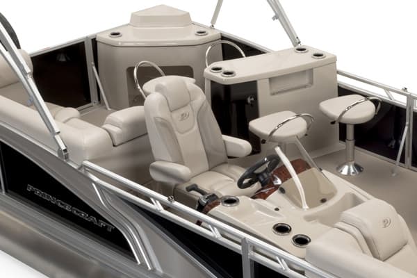 Même si ce n’est pas le premier ponton à posséder un bar à son bord, Princecraft a réussi à simplifier sa présentation afin de réduire son coût et son poids. Les tabourets étant ancrés plus bas que le plancher, ils sont plus sécuritaires tout en répondant aux normes lorsque le ponton est en mouvement.