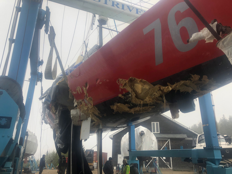 QY : Nous avons eu vent que le voilier océanique Esprit de Corps IV s’est échoué sur Cross Island. Est-ce qu’une voile s’est prise dans une hélice du moteur?