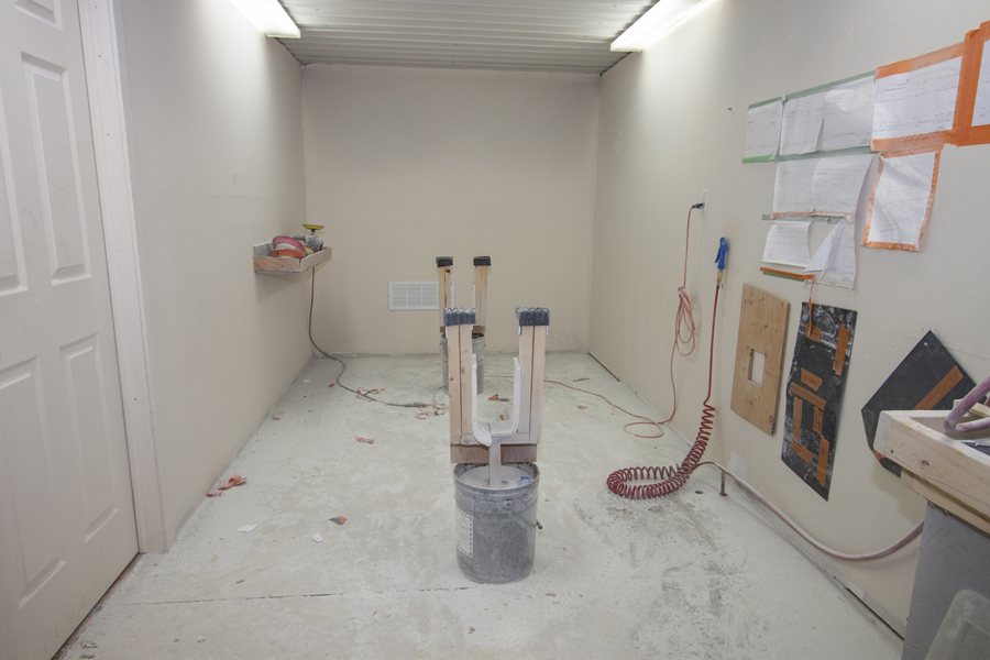 - Par la suite, toutes les étapes se font à la main. Les rayures sur le styromousse seront sablées.