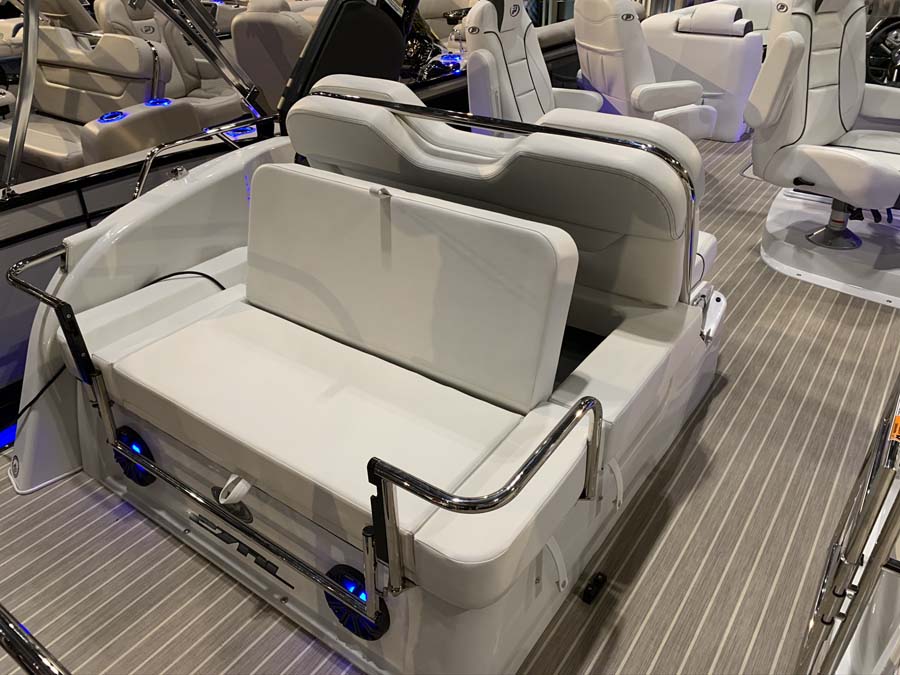 « Le Vogue 25 RL et le Vogue 27 RL complètent à merveille notre série de pontons Vogue. Nous proposons désormais quatre configurations différentes (aménagement classique en « L » à l’arrière, XT, RL et SX) dans cette série, sur des modèles allant de 23 à 29 pieds », a déclaré Jean-Philippe Martin-Dubois, Directeur Marketing et Expérience client chez Bateaux Princecraft. « Les modèles RL sont très polyvalents et fonctionnels. Les clients peuvent configurer le module de siège de cinq façons différentes, en fonction de l’utilisation voulue: orienté vers l’avant pour naviguer, orienté vers l’arrière pour surveiller un skieur, lit complet pour se détendre, etc. Ce design comprend également une clôture repliable en acier inoxydable autour du module de siège, pour plus de sécurité, de nombreux porte-gobelets pratiques et des haut-parleurs arrière. Sous le module de siège se cachent une salle d’habillage escamotable avec de l’espace pour une toilette chimique optionnelle, un rangement pour batterie ainsi qu’une glacière à vidange automatique. »