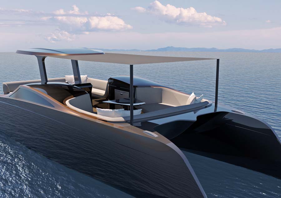 Voltaire Electric Yachts, une compagnie germano-américaine, lance officiellement son premier modèle de bateau tout électrique. Il s’agit du Voltaire 33 SKY possédant une autonomie de 100 milles nautiques (185 km) à une vitesse de croisière de 9 nœuds! Sa vitesse maximale est de 17 à 20 nœuds avec ses deux moteurs Deep Blue de Torqeedo d’une puissance totale de 100 kW et les deux batteries BMW i3 de 42 kWh les alimentent en énergie. L’extérieur de ce bateau à double coque mince qui promet d’être stable sur l’eau mesure 9,9 m (32 pi 6 po) de longueur et a été conçu par Jonas Hertwig. Il se caractérise par des formes dynamiques et des bouchains distinctifs.