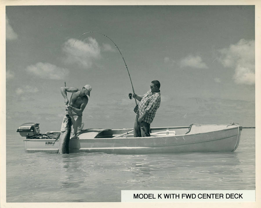 Après la Seconde Guerre mondiale, le président de la Flour City Ornamental Iron Company, Harry J.Neils, a eu une idée ingénieuse: pourquoi ne pas mettre à profit le savoir-faire que ses ouvriers avaient perfectionné dans la construction de pontons en aluminium et de pièces d’avion à bon escient en fabriquant des bateaux durables, légers et abordables pour la communauté de pêcheurs active de l’Upper Midwest. Avec l’aide d’un concepteur établi et visionnaire de bateaux de pêche en bois, Erich Swenson, le modèle B de 12 pieds est devenu le premier produit Alumacraft, au prix de 275 $, il comprenait un ensemble de rames en aluminium.