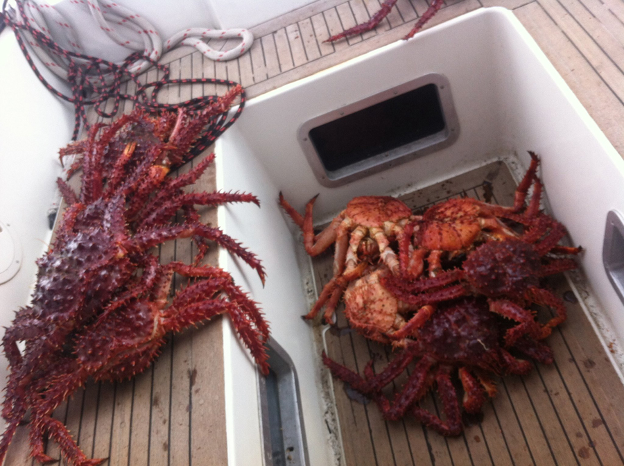 Là-bas, s’il y a un autre bateau au mouillage, c’est une bonne nouvelle : des amis! Tout le monde se connaît dans ce coin du globe, et rapidement, des amitiés se lient. C’est une autre particularité de la vie en bateau que j’ai adorée : des amis un peu partout, toujours prêts à aider, dépanner… et faire la fête! Les pêcheurs aussi sont plutôt sympathiques avec les voiliers et nous accostent parfois pour jeter dans notre cockpit des kilos de centollas³ frétillantes.