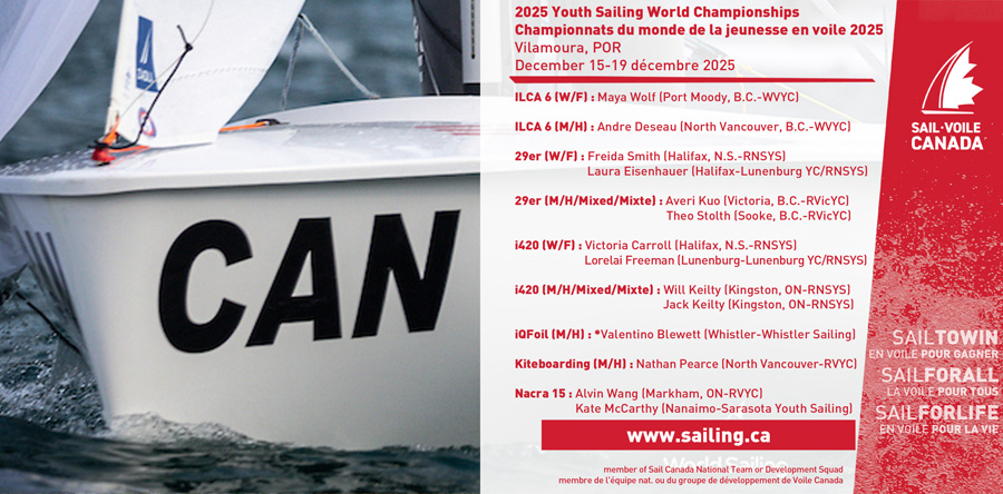 Les Championnats du monde de la jeunesse en voile représentent une étape importante pour les athlètes de moins de 19 ans en vue de faire partie de l’équipe canadienne de voile. Cette compétition est présentée annuellement depuis 1971, à l’exception de 2020 en raison de la pandémie. Parmi les anciens athlètes canadiens qui ont participé aux Championnats du monde de la jeunesse en voile, notons Georgia Lewin-LaFrance, qui a participé aux Jeux olympiques de Paris 2024 et qui a terminé 6e à l’édition de 2017, l’Olympien de Tokyo 2020 Ali ten Hove, qui a participé aux éditions de 2012 et 2013, et Luke Ramsay, qui a remporté la compétition en ILCA 6 en 2006 et qui a ensuite représenté le Canada aux Jeux olympiques de 2012 et 2016. Les membres actuels de l’équipe canadienne de voile Ryan Anderson, Annie Balasubramanian et Clara Gravely ont également pris part à cette compétition.
