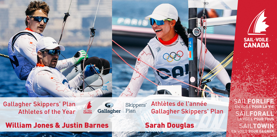 Sarah Douglas from Toronto and the Canadian 49er Team comprised of Will Jones and Justin Barnes were named Gallagher Skippers’ Plan Athletes of the Year for 2024.