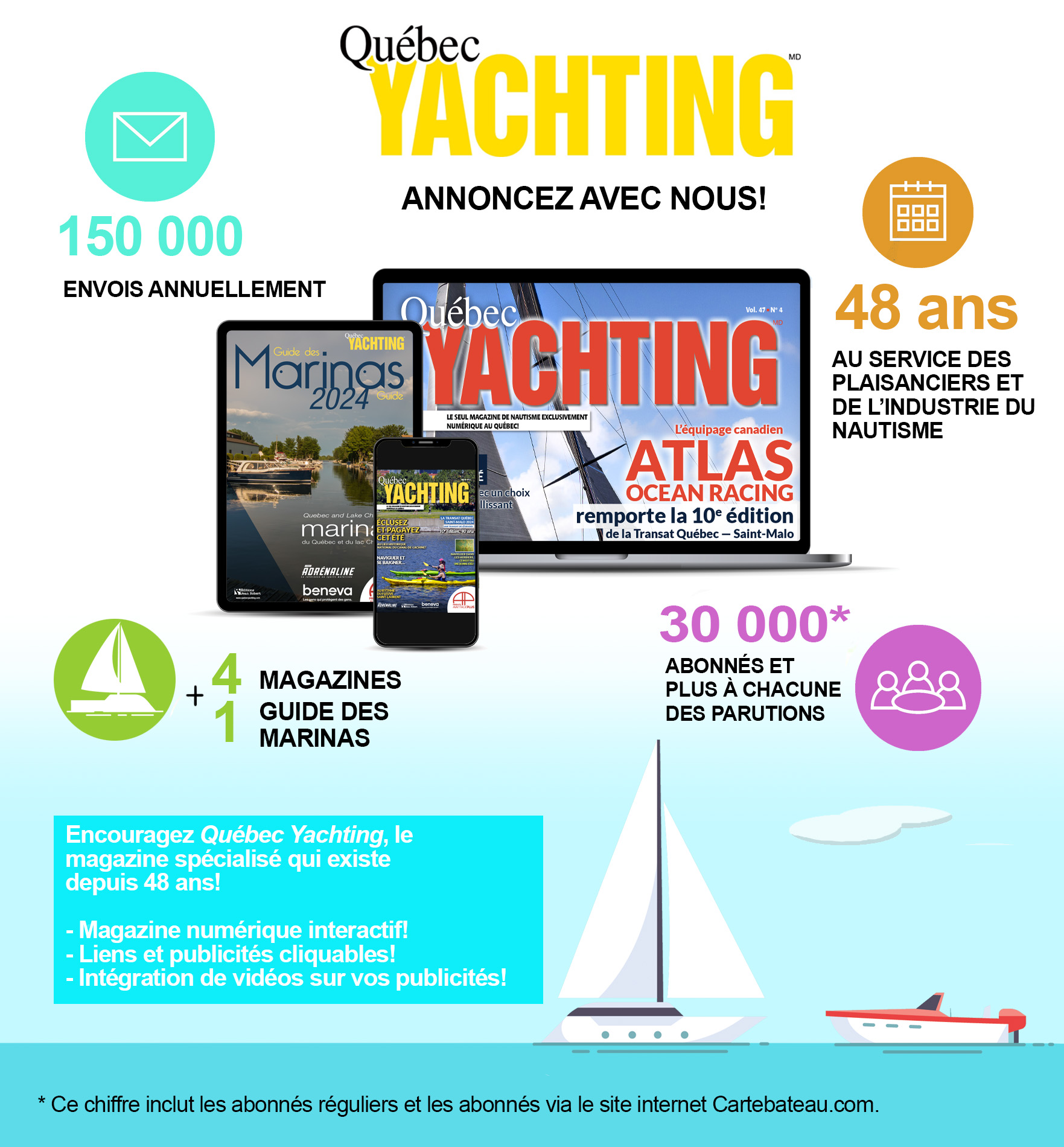 Nous préparons le magazine numérique Vol. 49 No. 1 (Hiver 2026) de Québec Yachting! C’est le moment de l’année pour annoncer vos services et vos produits!